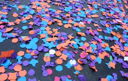 Auf 21 Nummero wurde der grosse Umzug angekündigt. Eigentlich sind es wohl 42 oder noch mehr Nummern da etliche Wagen und Gruppen aus zwei oder gar drei Teilen bestanden. Egal wieviele es auch waren. Der Umzug oder besser gesagt Cortège war lang (dauerte ja gut 2 Stunden). Zehntausende Zuschauer säumten die Strassen und Konfettis lag zentimeterdick auf den Strassen. Dazu noch traumhaftes und optimales Wetter. Grandios.